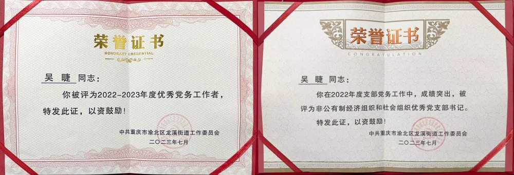 2023年(nián)7月(yuè),中共重慶新東方教育研究院支部委員(α≈≈yuán)會(huì)榮獲市(shì)社科(kē)聯“先進基層黨組織”;黨支 £部書(shū)記吳睫榮獲“優秀黨務工(gōng)作(zuò)者§€✔”!