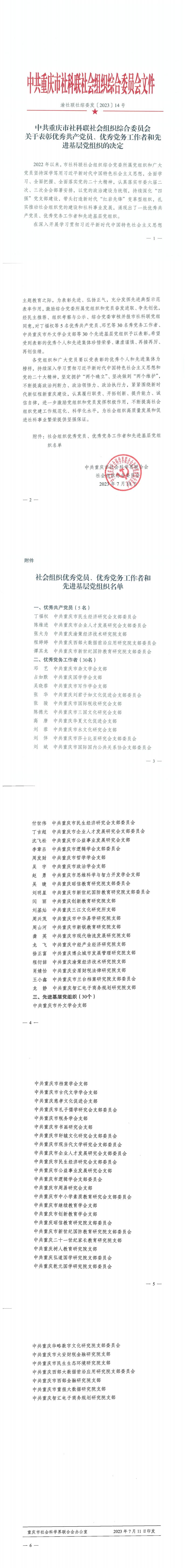 附:中共重慶市(shì)社科(kē)聯社會(huì)φ♣組織綜合委員(yuán)會(huì)關于表彰優秀共産黨員(yuán)、優秀黨→§×務工(gōng)作(zuò)者和(hé)先π↕進基層黨組織的(de)決定